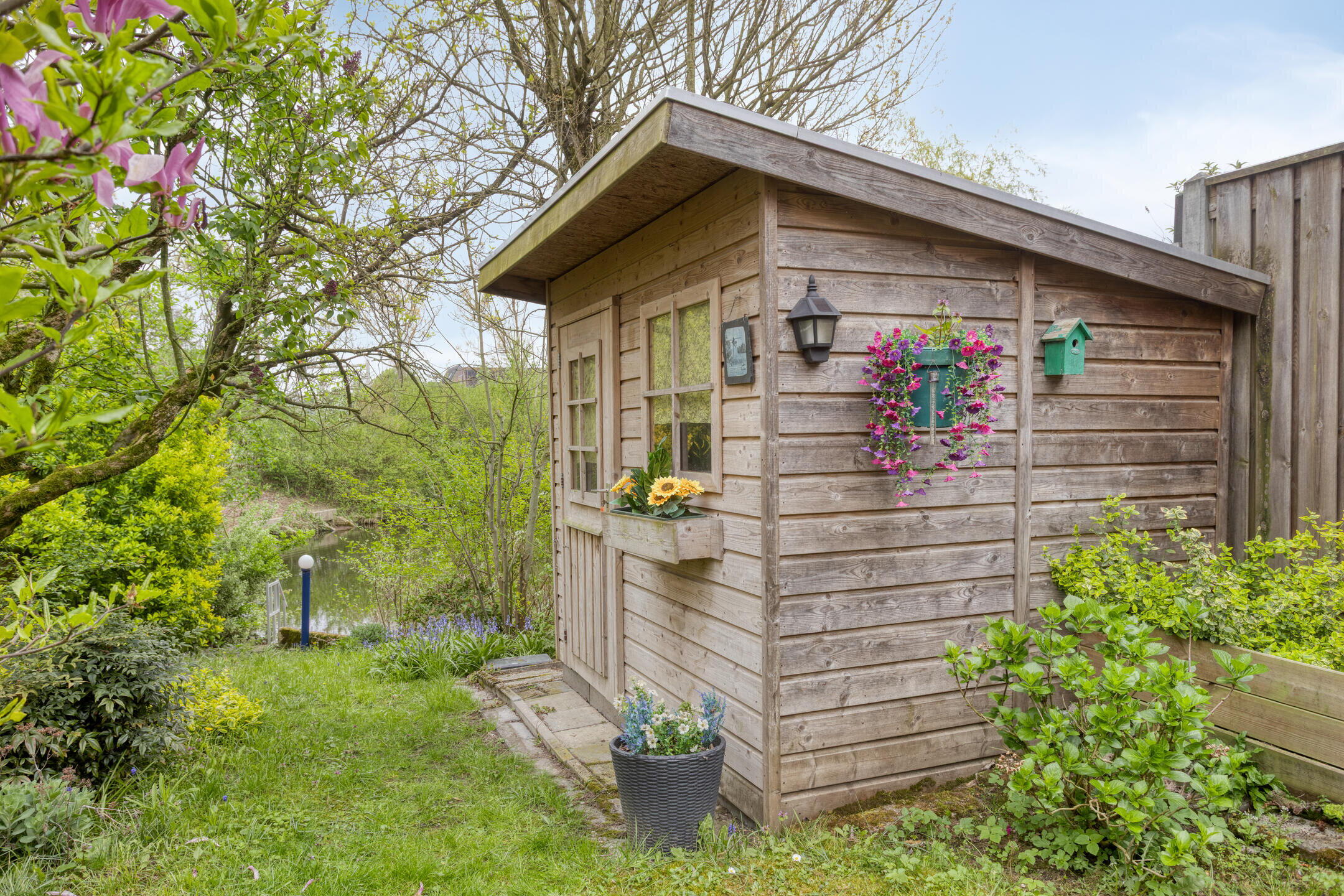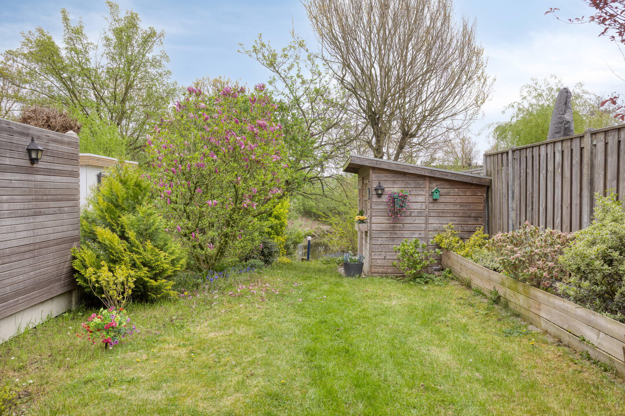 - Fijne tuin met veel privacy met terras bij achtergevel en een tweede terras aan de waterkant.