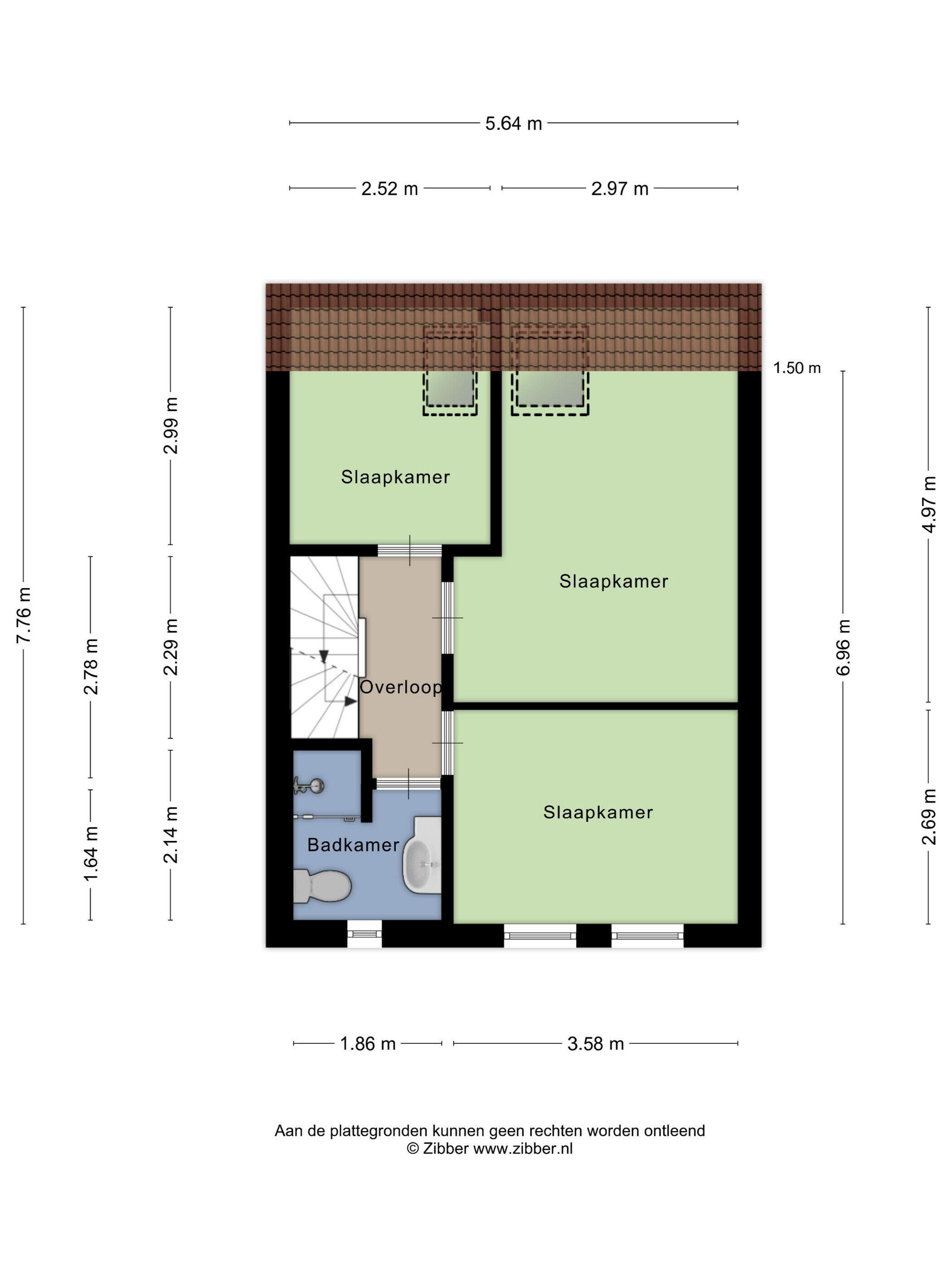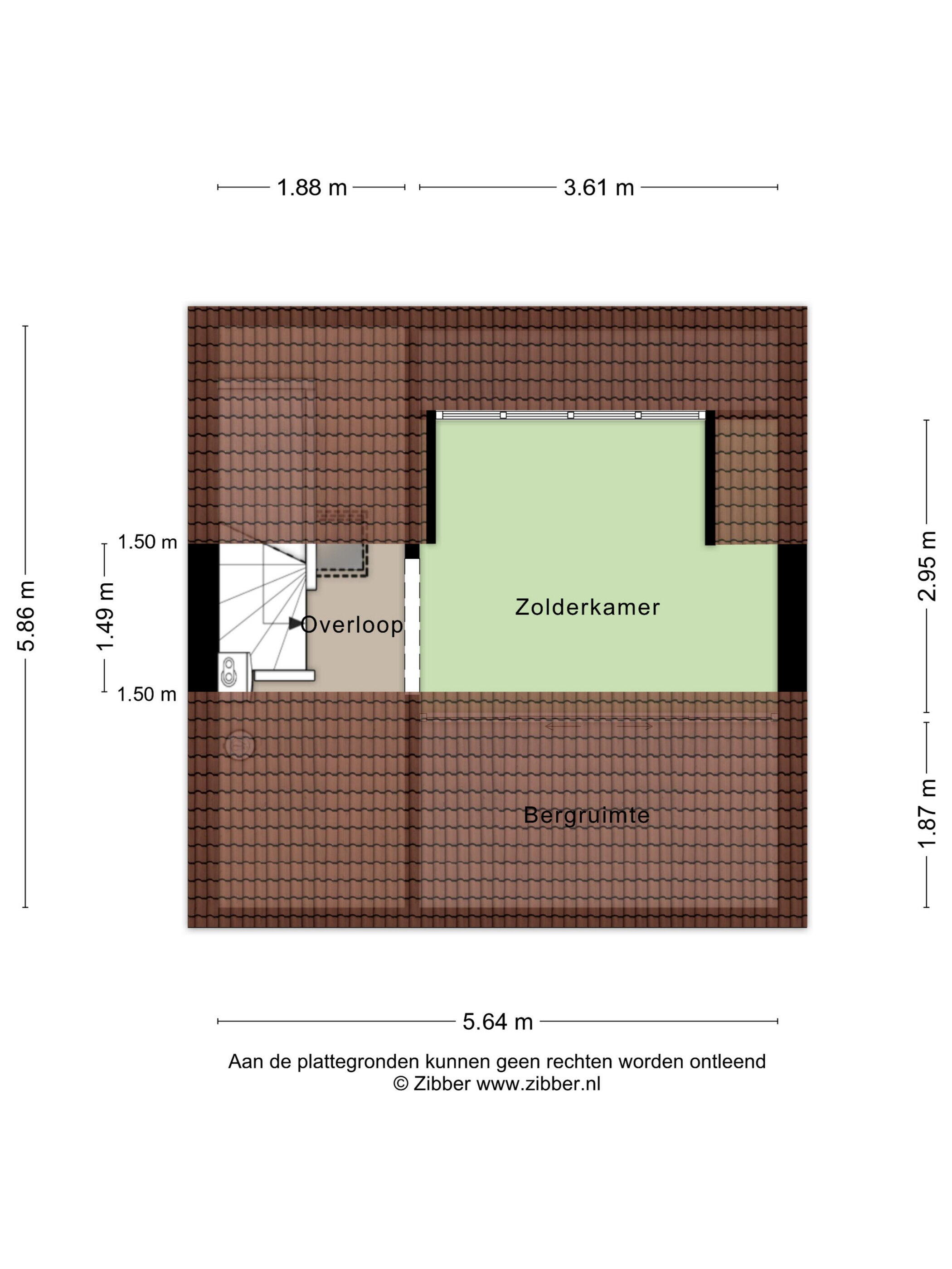 Tweede verdieping: voorzolder met opstelling cv-ketel en dakraam; zolderkamer met dakkapel. Voorts diverse bergruimte.